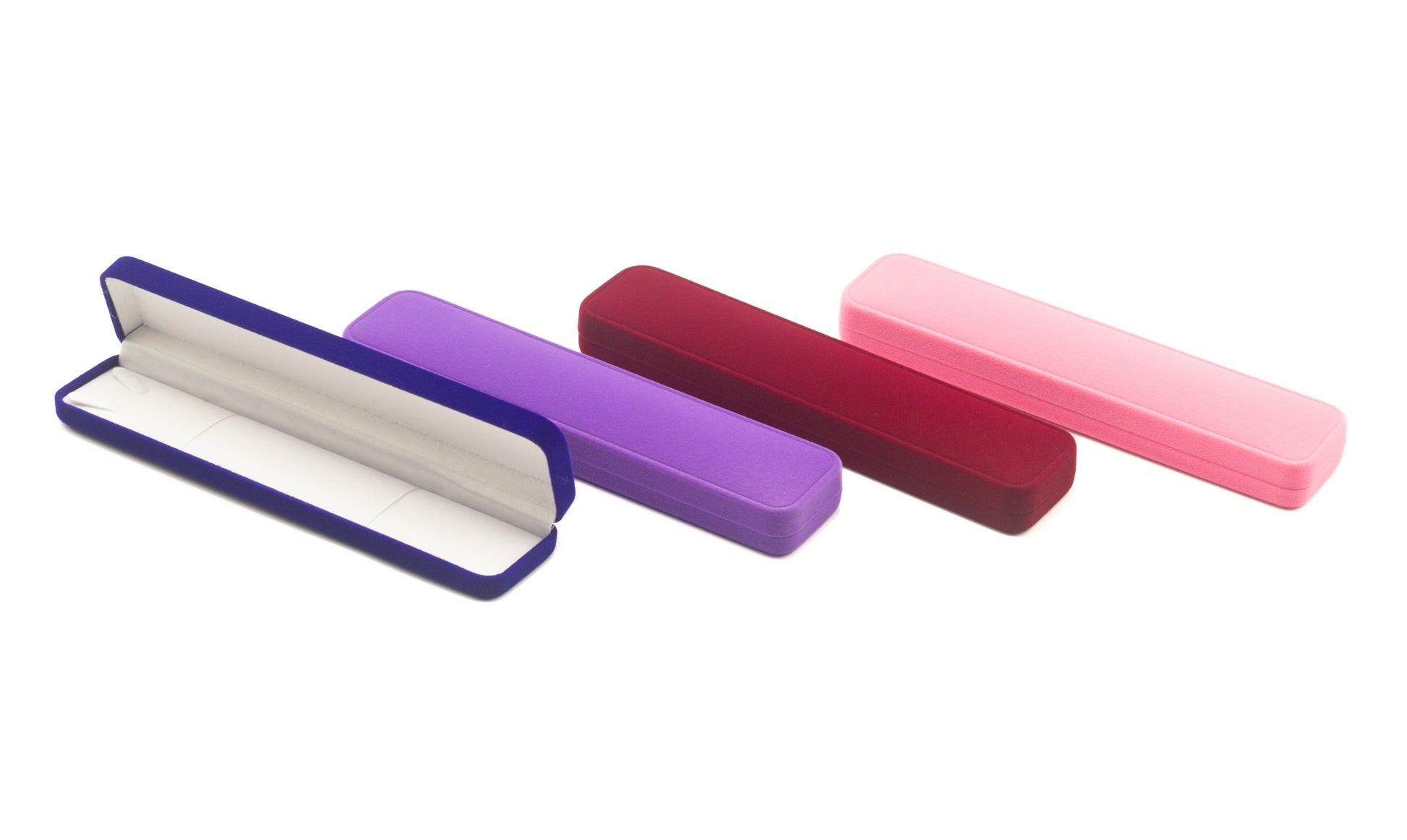 Add a splash of vibrant elegance to your jewelry collection with our Imported Multi-Color Velvet Chain Boxes. This stunning assortment includes four luxurious colors—dark blue, purple, red, and pink—each exuding its own unique charm and sophistication. Crafted from premium velvet, these boxes provide a sumptuous touch and a sleek, protective interior for your delicate chains and necklaces. The rich texture of the velvet ensures that your jewelry is cradled in comfort while preventing any scratches or tarnish. The dark blue box exudes classic sophistication, the purple box adds a regal touch, the red box brings bold energy, and the pink box offers a playful, feminine flair. Each box is meticulously designed to not only store your chains securely but also to enhance their presentation, making them ideal for both personal use and elegant gifting. Imported to ensure top-notch quality and style, our Multi-Color Velvet Chain Boxes are the perfect choice for anyone looking to add a touch of color and luxury to their jewelry storage solutions.