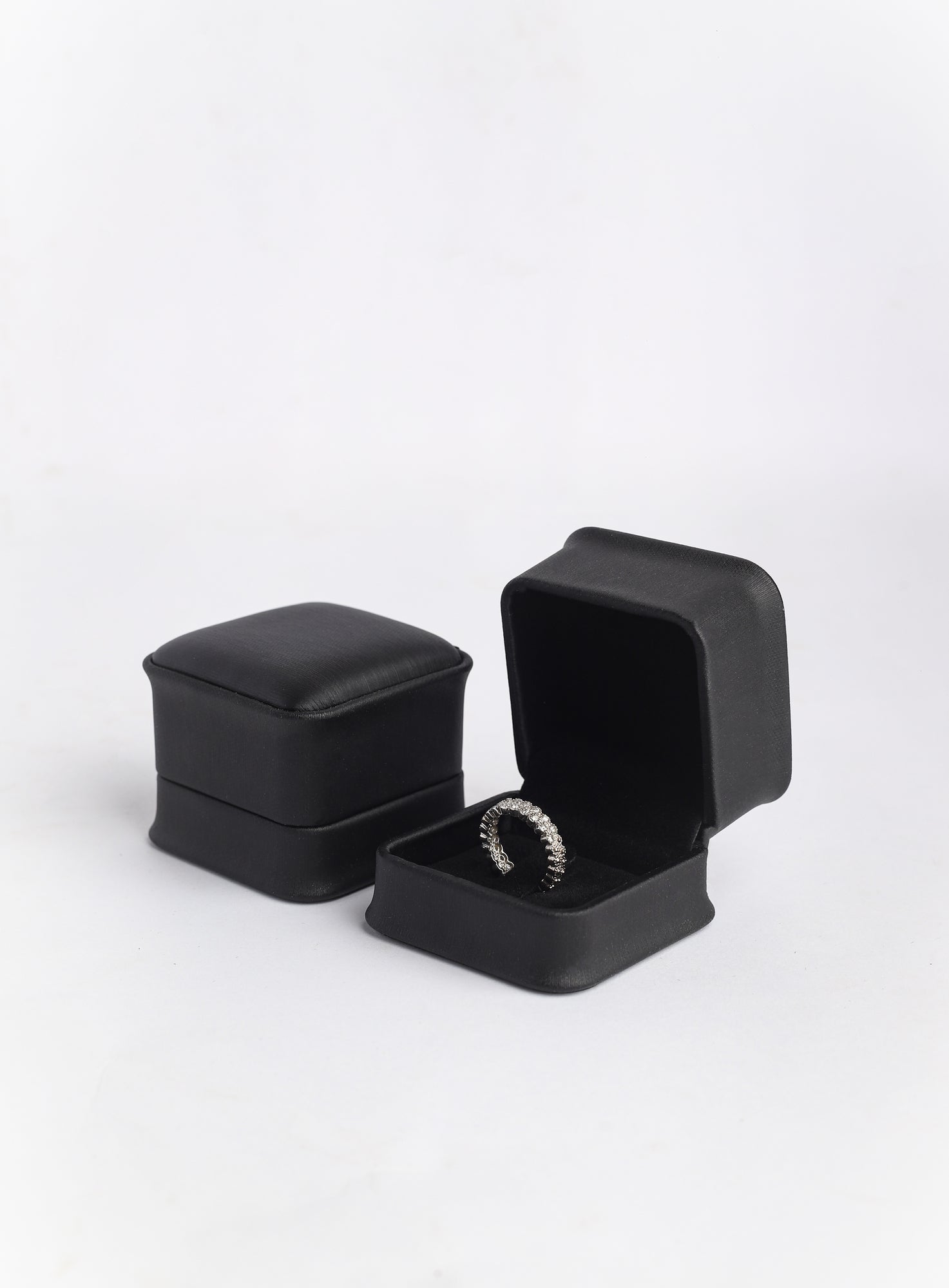 The Gents Ring Box LC is a unique addition to the "Leather C" collection, designed specifically with a secure hook mechanism instead of foam for holding men's rings. Crafted with a black rexine exterior and a plush black velvet interior, this imported box exudes a sleek and sophisticated look. Ideal for the modern gentleman, the Gents Ring Box LC offers both functionality and style in a compact, luxurious design.