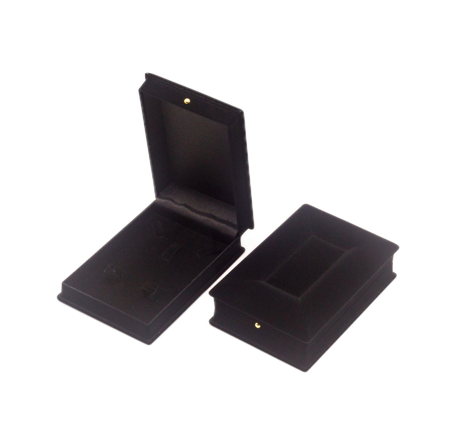 Discover the Locket Set Box 4 x 6 Ginni—where elegance meets versatility. This imported box features a distinctive square punch design on the top, adding a touch of modern sophistication. Covered in black velvet inside and out, it offers a luxurious backdrop for your most cherished pieces. Designed to hold a chain locket, a pair of earrings, and a ring, this box provides secure and stylish storage for your favorite jewelry. A golden button on the front enhances its refined look, making it an ideal choice for both organizing and showcasing your treasured items with grace.