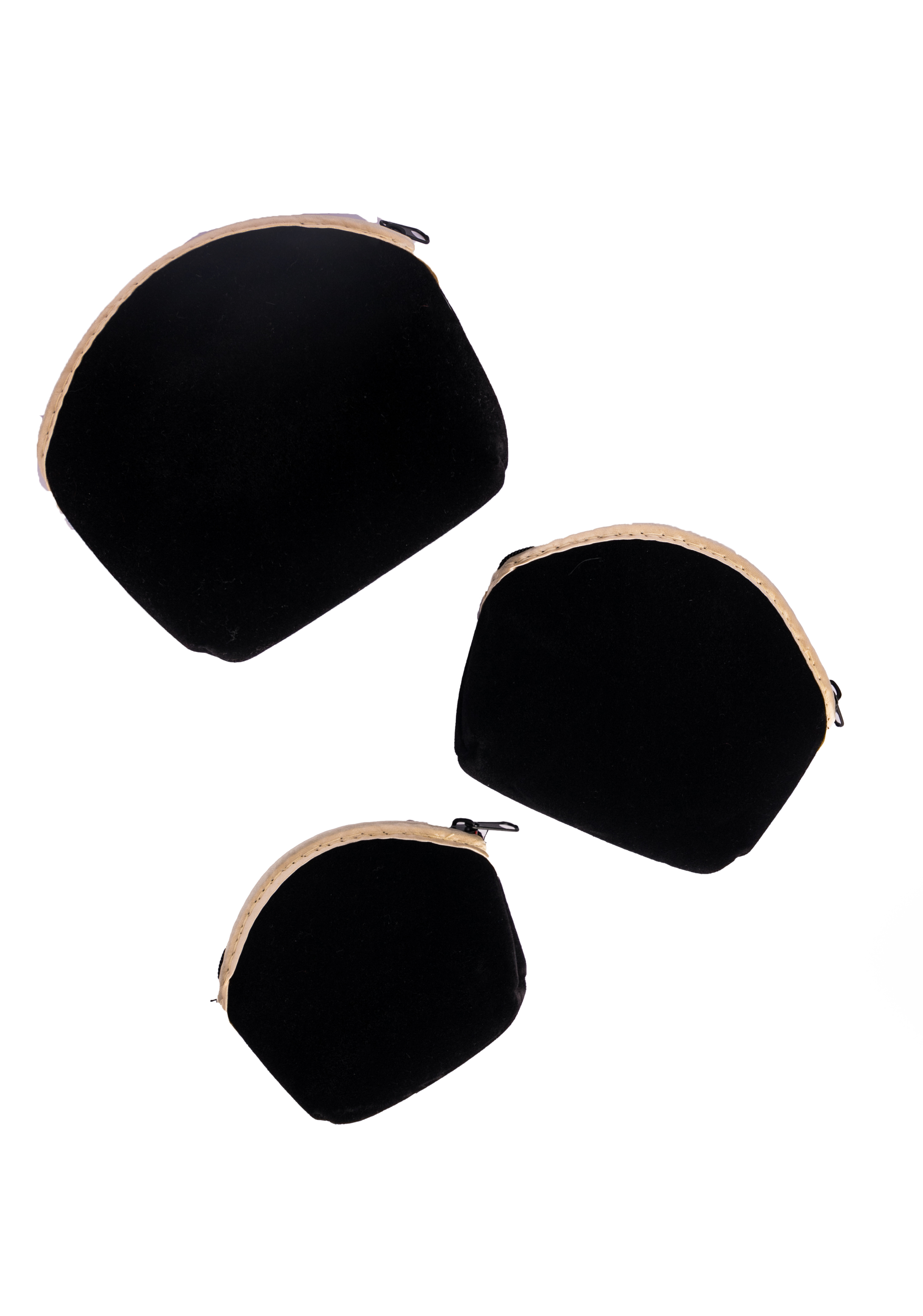 Presenting the Pouch Velvet Bezwi C, a sophisticated and durable pouch designed to combine elegance and functionality. This hard pouch features a luxurious black velvet exterior, offering a sleek and refined look while ensuring robust protection for its contents. The zipper closure, accented with a golden tape around the edges, adds a striking contrast and a touch of luxury.