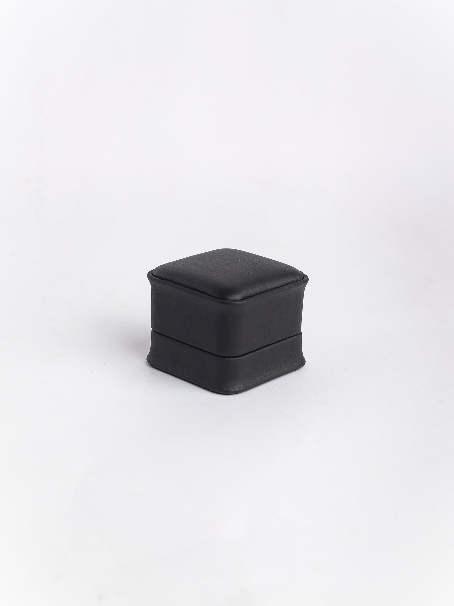 Introducing the Ring Box LC from the refined "Leather C" collection. This elegant ring box is designed with a sleek black exterior made of high-quality rexine and features a luxurious black velvet interior. Imported for superior craftsmanship, it provides the perfect setting to showcase and protect your rings. The modern, all-black design offers a timeless aesthetic, ensuring that your ring is presented with sophistication and style.